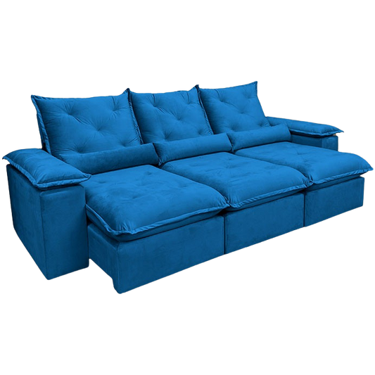 Sofá Retrátil e Reclinável Brasão 2,70 m Veludo Azul – MD ESTOFADOS