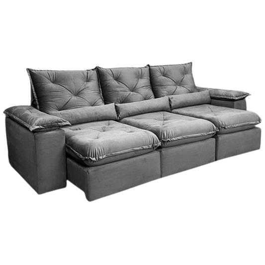 Sofá Retrátil e Reclinável Arezzo Comfort 2,50 m Veludo Cinza Grafite – SINGULAR ESTOFADOS