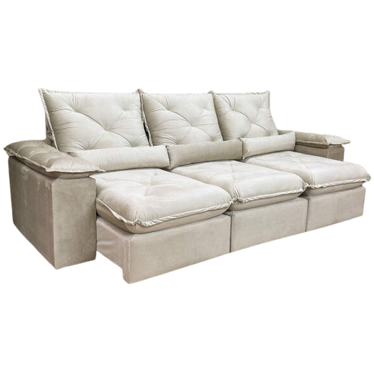 Sofá Retrátil e Reclinável Arezzo 2,50 m Veludo Marfim – ARJAN DECOR