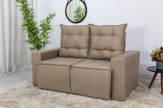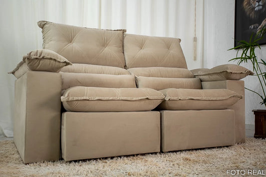 Sofá Retrátil Reclinável 1.60m Rafaela Veludinho Bege