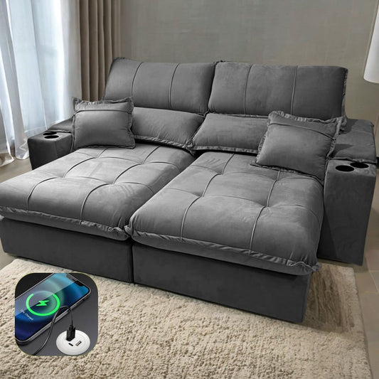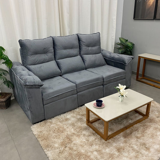 Sofá Retrátil Luma 2.00m Veludo Premium Cinza 36 - Sem Caixa