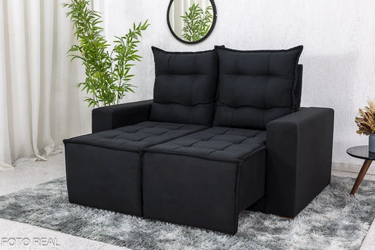 Sofá Retrátil Reclinável 1.60m Rafaela Veludinho Preto