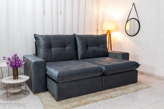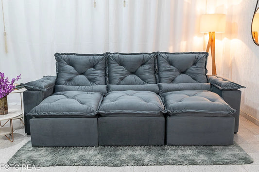 Sofá Retrátil Reclinável 2.50m Santiago Veludo Cinza 526 - Molas Ensacadas