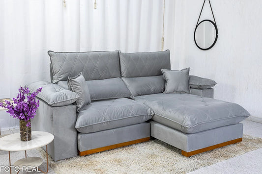 Sofá Retrátil Reclinável 2.50m Lenon Veludo Cinza - D28 Soft e Molas Ensacadas
