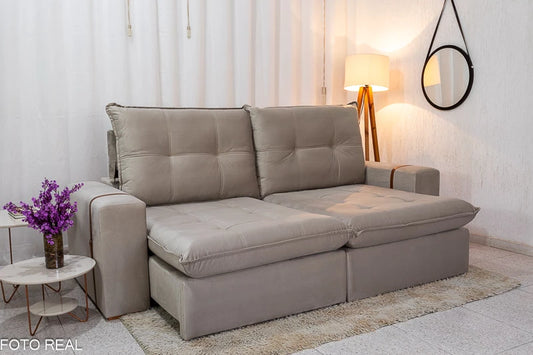 Sofá Retrátil Reclinável 2.50m Santiago Veludo Bege 525 - Molas Ensacadas