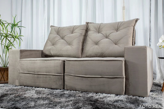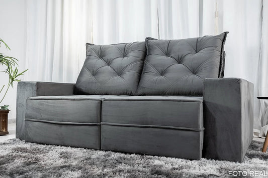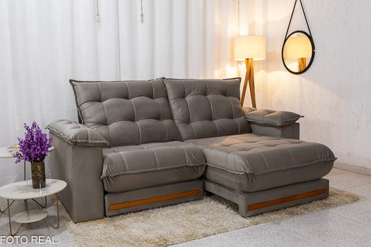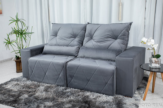Sofá Retrátil Reclinável Barra Bonita 2.30m – Cinza Veludo