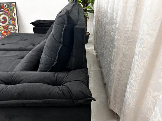 Sofá Retrátil Reclinável Ibis 2.30m Veludo Preto 820 - D33 e Molas Ensacadas