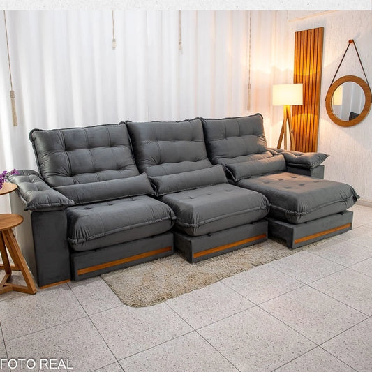 Sofá Retrátil Reclinável Iguaçu 2.10m – Cinza Veludão