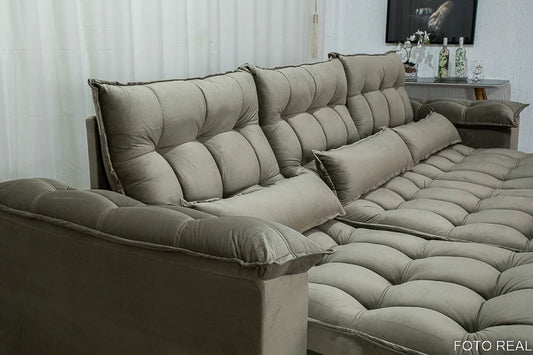 Sofá Retrátil Reclinável Istambul 3.20m Veludo Cinza 403 - Espuma D33