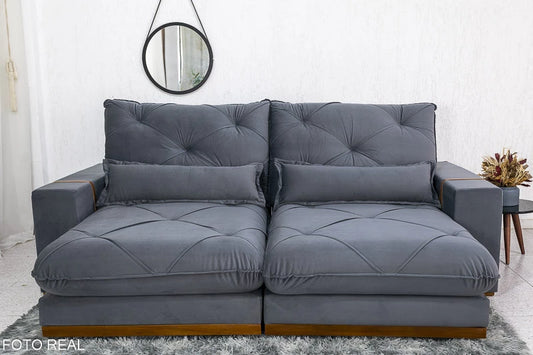 Sofá Retrátil Reclinável Luanda 2.50m Veludo Cinza 010 - Molas Ensacadas