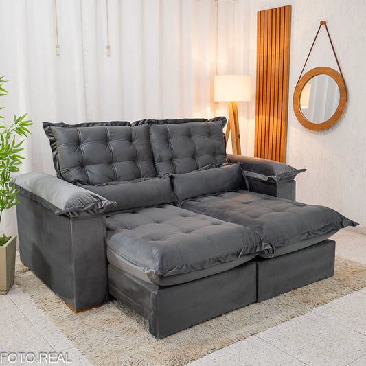Sofá Retrátil Reclinável Maldivas 2.10m Veludo Grafite A15 - Espuma Pró Aditivada