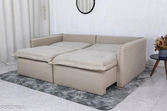 Sofá Retrátil Reclinável Lima Linho Bege A57 Larg. 2.00m - Sem Caixa
