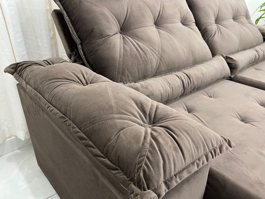Sofá Retrátil Reclinável Madri 2.70m Veludo Marrom
