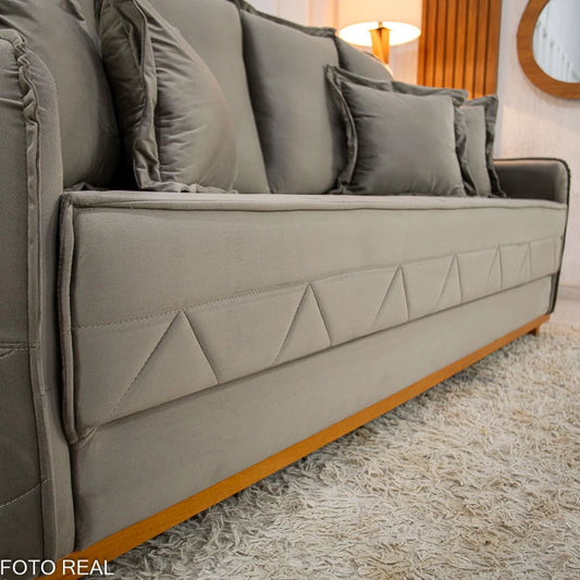 Sofá Vican Veludo Bege 5003 Larg. 2.00m - Molas Bonnel