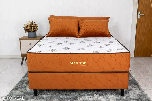 Box + Colchão Casal Espuma D45 Max Top Premium Ferrugem 138×188 Nosso Sonho Almofadas Grátis