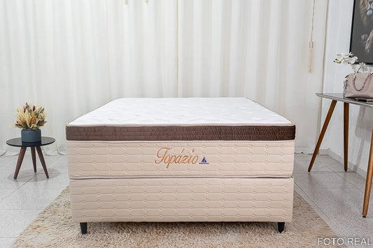 Base Box + Colchão Casal Topázio 138x188x74 Molas Ensacadas Rondomóveis