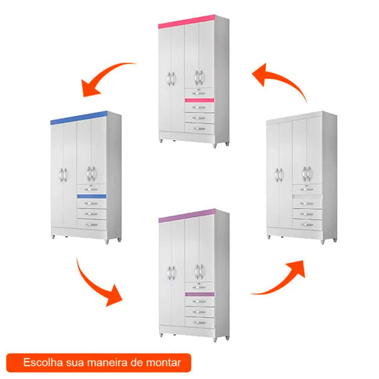 Guarda-Roupa 4 Portas Lívia 0,89 m (Menina) Barbie 404189 – MADEC/VJ MÓVEIS
