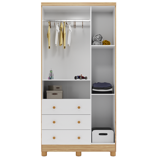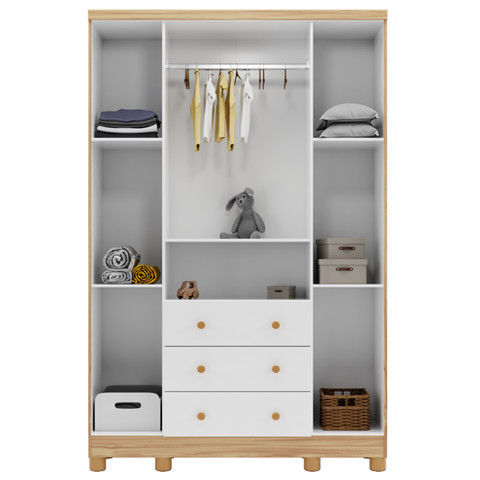 Guarda-Roupa 3 Portas Tedy Branco Brilho/Amêndoa – PEROBA MÓVEIS