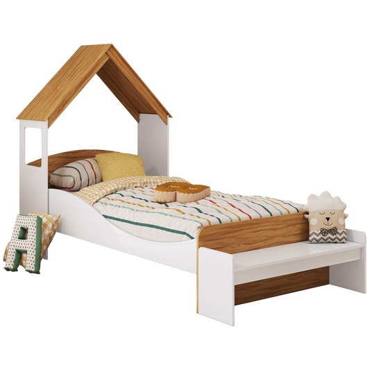 Kit Casinha + Cama Solteiro Lua Branco Brilho/Amêndoa – PEROBA MÓVEIS