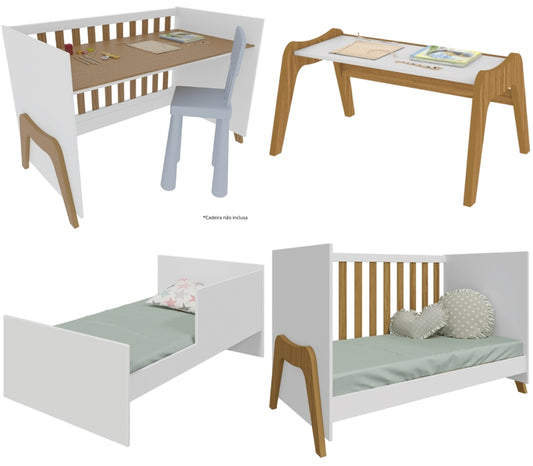 Guarda-Roupa 4 Portas + Cômoda + Berço Guti Retrô Branco Brilho/Amêndoa – PEROBA MÓVEIS