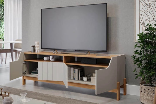 Home Ripado com LED Absoluto TV até 65 Polegadas Cinamomo/Off White JCM