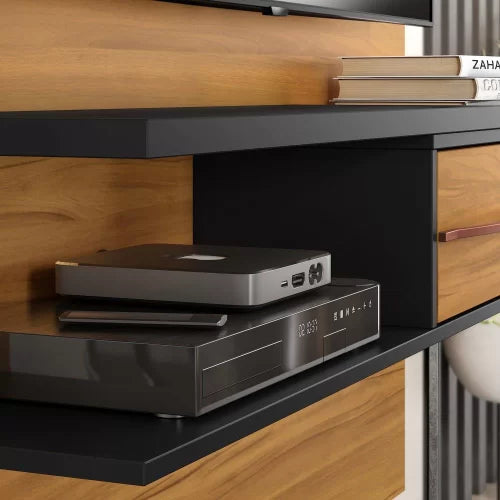 Painel Home Suspenso Para TV Até 55 Polegadas 1 Porta Sala de Estar Marrom Madeira e Preto Preto/Marrom