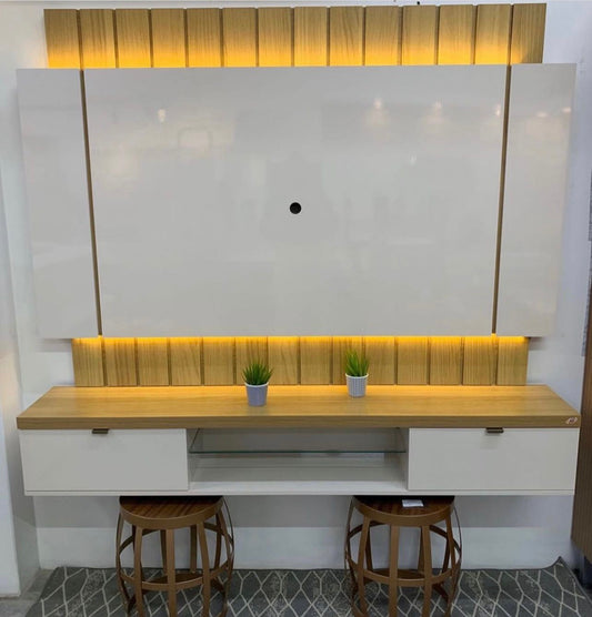 Rack Requinte com LED + Painel Nobre Ripado