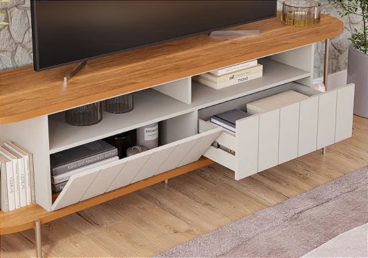 Rack Turim 160 2P3N Off White.Naturale Bechara Moveis