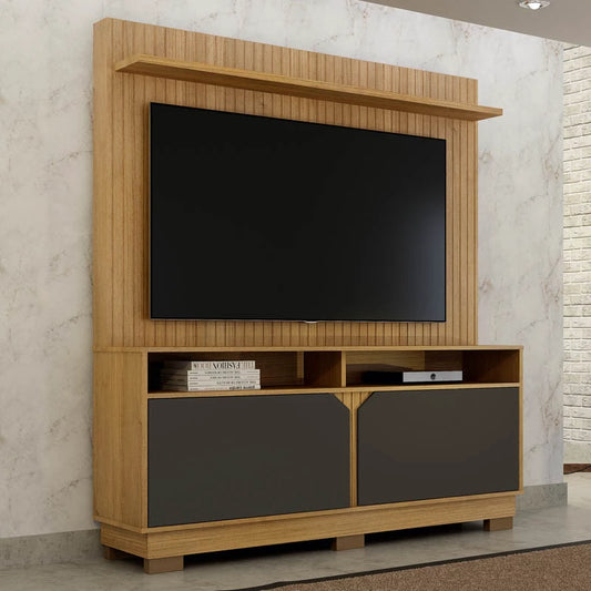 Home Berlim Com Painel Fresado Larg. 1.35m Cinamomo/Grafite - Valdemoveis