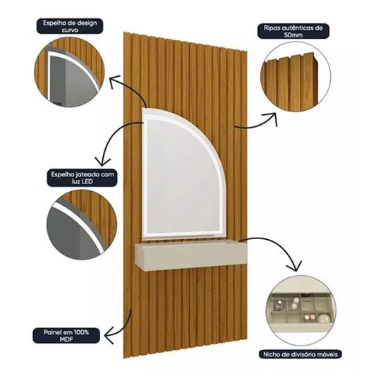 Penteadeira Realeza Ripada Larg. 0.94m C/ Espelho e LED Naturale/Off Gelius