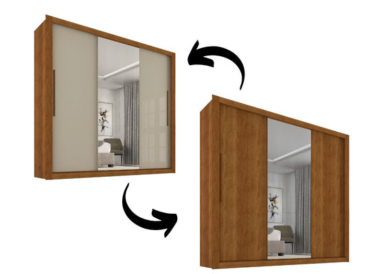 Guarda-Roupa Panamá 3 portas de correr flex com 1 espelho – Cinamomo/Off White