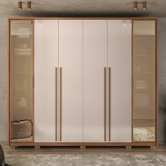 Roupeiro Imperatriz 6P sendo 2 Vidro Reflecta com LED e Pes Naturale.Off White Gelius