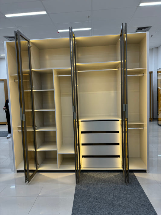Roupeiro Innova 6 Portas de Vidro Reflecta com LED e Pes Off White Gelius