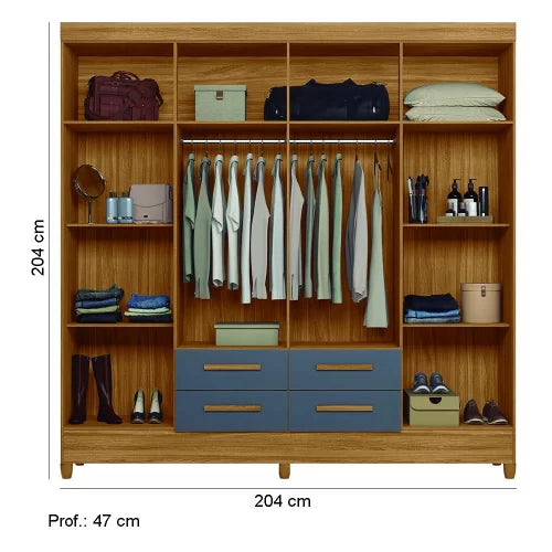 Roupeiro Oxford 6P sendo 4P Ripadas e 4G Peroba