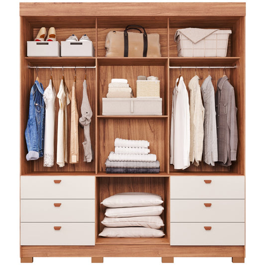 Roupeiro Siena Ripado 6 Portas Larg. 2.70m MDF Nature/Off Bianchi