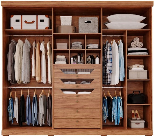 Roupeiro Sevilha 3 Portas 9 Gavetas C/Espelho Larg. 1.62m Cinamomo