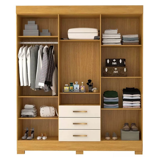 Roupeiro Heloisa c/Espelho 2 Portas 3 Gavetas 100% MDF Larg. 1.80m Nature/Off ACP