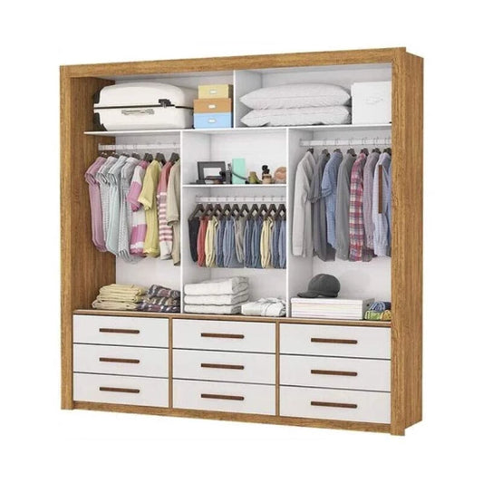 Roupeiro Anjos Cinamomo/Off 3 Portas 9 Gavetas C/ 1 Espelho Larg. 1.91m - Carioca Móveis