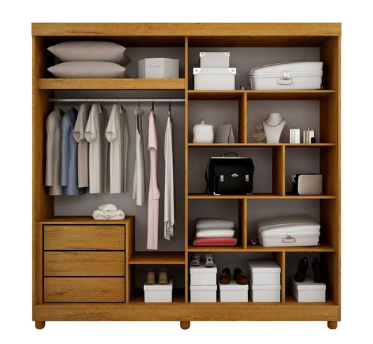 Guarda Roupa Paradizzo Casal com Espelho 3 Portas 6 Gavetas Novo Horizonte Cumaru/Fendy