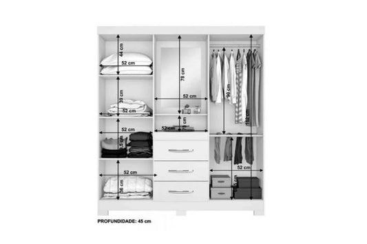 Guarda-Roupa 3 Portas(Com Pés)Athenas 1,80 m Branco – BIANCHI
