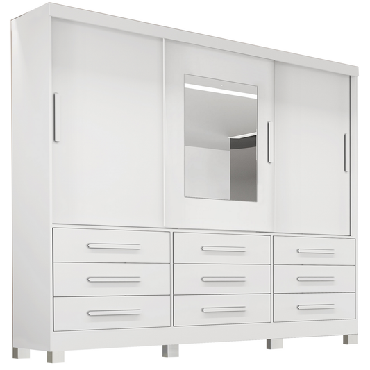 Guarda-Roupa 8 Portas Rubi 2,08 m(Com Espelho) Branco – CARIOCA MÓVEIS
