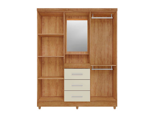 Roupeiro Capelinha Lyon c/Espelho 4 portas Mel/Off White