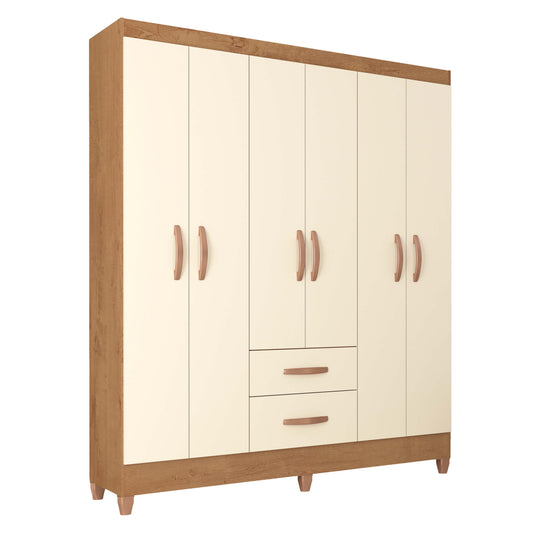 Roupeiro Natal 6 Portas 2 Gavetas Larg. 1.35m (GR6223) Cinamomo/Off Com Pés Rodial Móveis