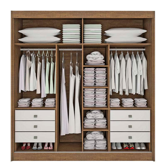 Roupeiro Fortaleza 6 Portas 3 Gavetas Larg. 1.62m (GR6365) Cinamomo/Off Com Pés Rodial Móveis