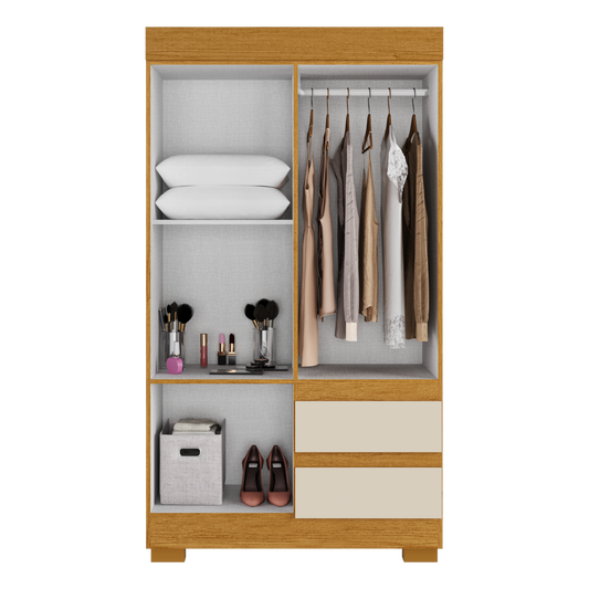 Roupeiro 2 Portas Titanium c/1Espelho 100% MDF Cinamomo/Off Larg. 2.20m DDoro