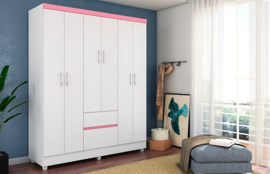 Guarda-Roupa Araplac 1005 flex 5 portas – Branco/Rosa