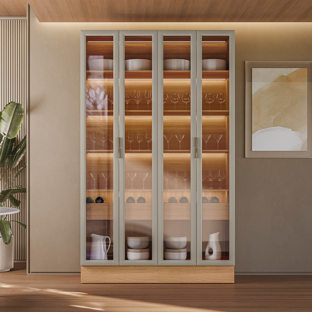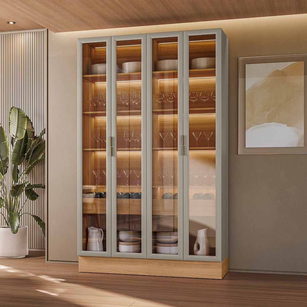 Cristaleira Dupla Allure (Kit com 2) Rodapé Simples Jequitibá/Gris Fosco – LINEA BRASIL