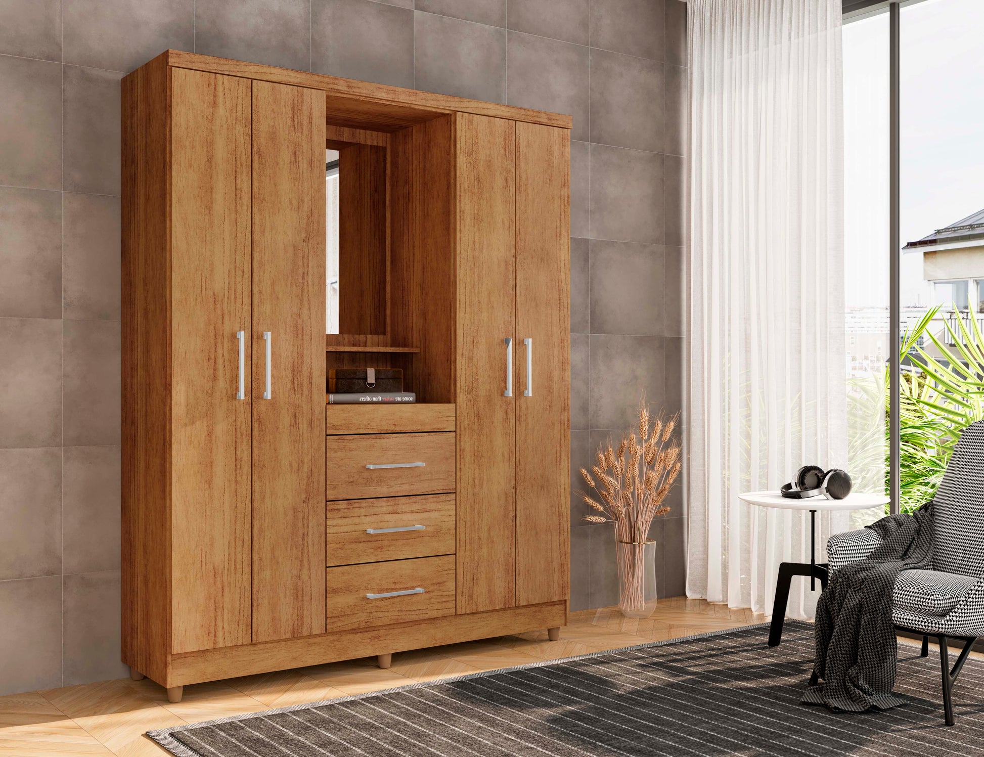 Guarda Roupa Capelinha Lyon Solteiro com Espelho 4 Portas 3 Gavetas Rud Rack