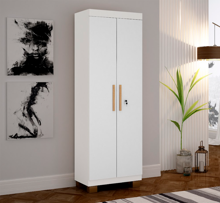 Alt.: 190cm - Larg.: 63cm - Prof.: 40cm - Chave na porta - Pés para elevação - Puxador em ABS - Prateleiras móveis
