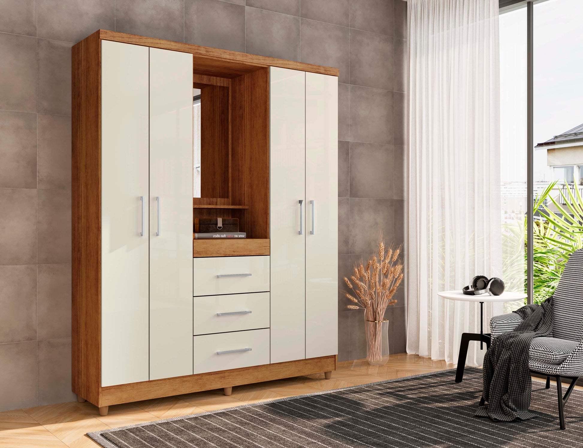 Roupeiro Capelinha Lyon c/Espelho 4 portas Mel/Off White